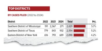 The Southern District of Texas ranks second in a Lex Machina report released Thursday that examines which venues handled the greatest number of tort cases between 2022 and 2024.