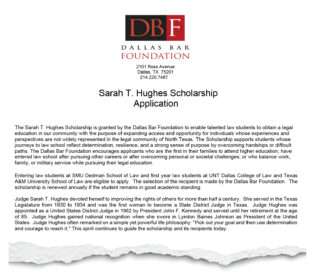 The Dallas Bar Foundation has resumed its long-running Sarah T. Hughes Scholarship after pausing it earlier this year but has removed “diversity” from its title and eliminated explicit references to race and minority status from the scholarship’s description and application. Formerly titled the Sarah T. Hughes Diversity Scholarship, the stated purpose was to support minority law students and promote diversity in the North Texas legal community. The revised version now focuses on applicants who have demonstrated resilience and overcome hardship, emphasizing broader examples of underrepresentation such as being first-generation college students or balancing school with work or military service.