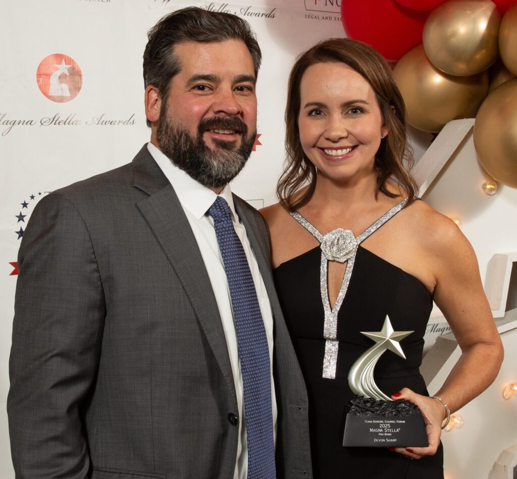 Devon Sharp, associate general counsel at Galderma Laboratories and immediate past chair of Dallas-area Attorneys Serving the Community, was honored with the Texas General Counsel Forum’s Magna Stella Award for pro bono service.